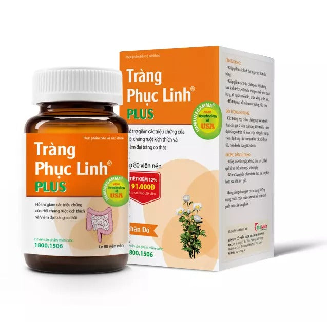 Trang Phuc Linh Plus bottle of 80 tablets is a health protection food made from natural herbs such as arachnid, arachnid long, astragalus, white dahlia and 2 ingredients 5-HTP, Immune Gammar. The product has the effect of enhancing digestion and supporting the treatment of colitis.