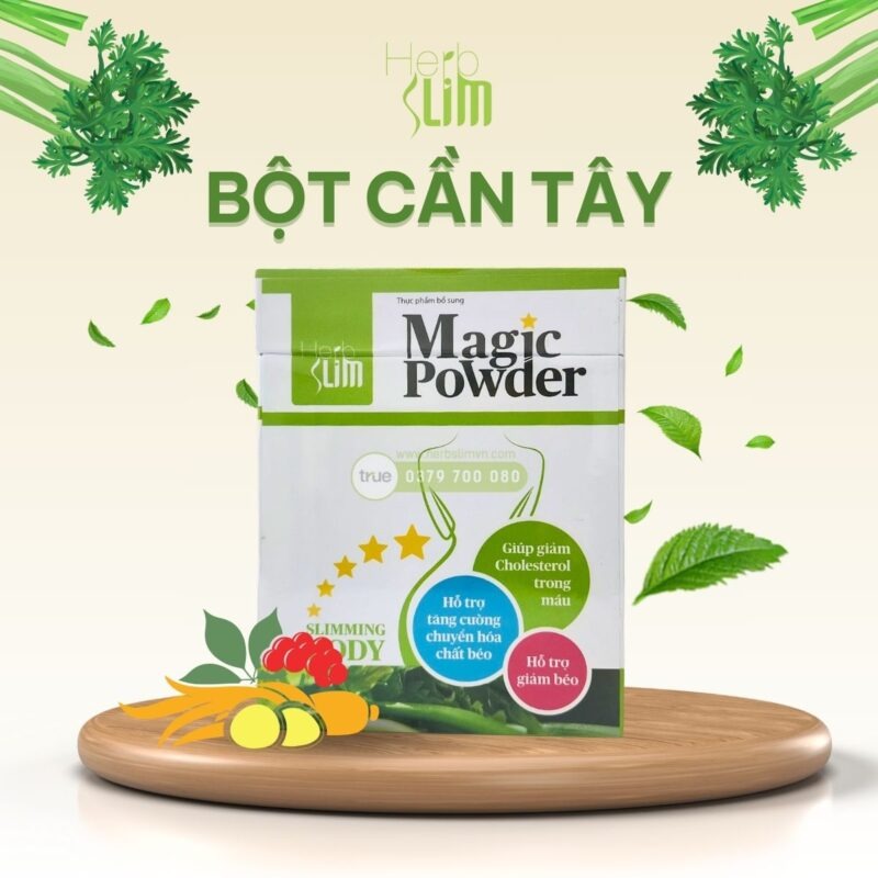 Bột Cần Tây Hồng Sâm Herbslim Giảm Cân – Magic Powder một sự kết hợp hoàn hảo từ 100% cần tây tươi nguyên chất và các nguyên liệu thiên nhiên cao cấp, giúp bổ sung gần 10 chất chống oxy hóa khác nhau, không chứa chất béo, rất giàu vitamin, khoáng chất và chất xơ cho cơ thể, đây hẳn là dòng sản phẩm làm đẹp có lợi cho sức khỏe, ít calo chiết xuất hoàn toàn từ thiên nhiên tuyệt vời cho chị em phụ nữ.