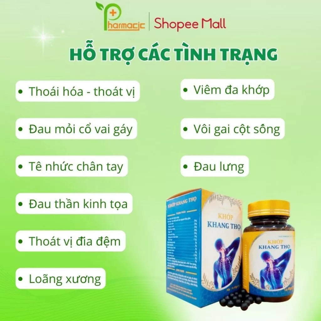 - Khớp Khang Thọ - Giải pháp hoàn hảo cho những cơn đau nhức xương khớp! Sản phẩm giúp hỗ trợ xương khớp chắc khỏe, giảm đau nhức hiệu quả, đặc biệt là các triệu chứng thoát vị đĩa đệm, đau mỏi vai gáy, đau lưng. Với thành phần 100% thảo dược tự nhiên, viên uống bổ khớp Khớp Khang Thọ là lựa chọn an toàn và tin cậy cho mọi người