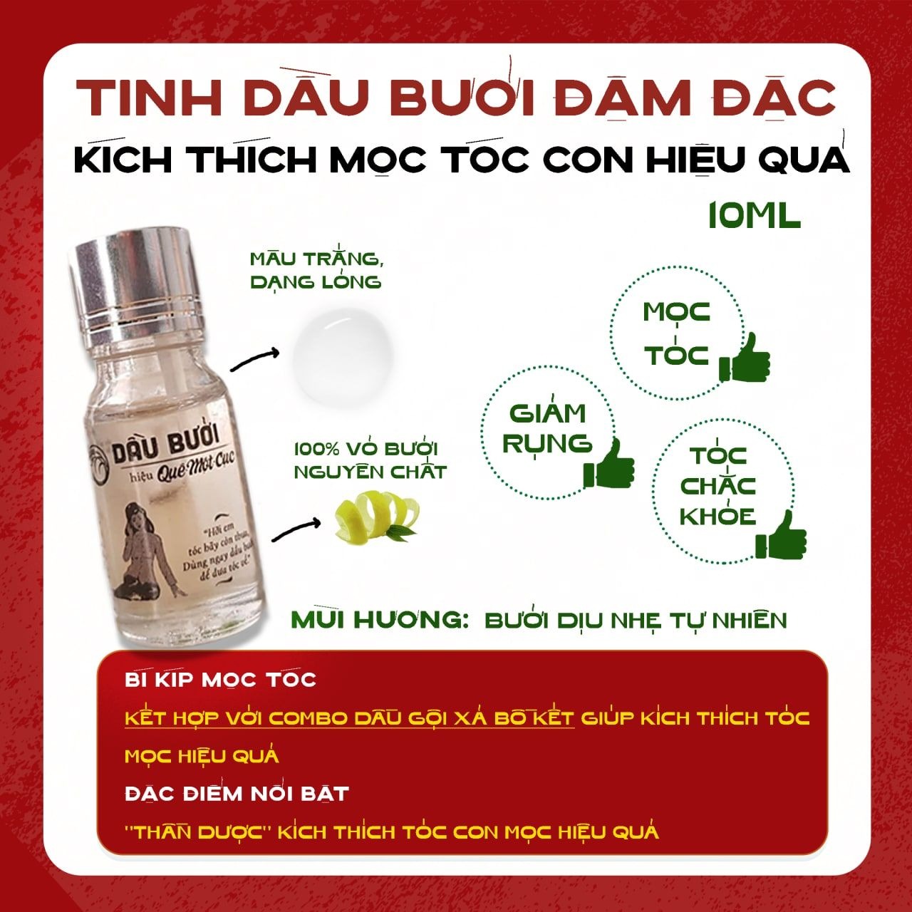 ĐÂY LÀ DẦU BƯỞI ÉP LẠNH ĐẬM ĐẶC, TINH CHẤT MỌC TÓC TÁC ĐỘNG, KÍCH THÍCH SÂU VÀO TẬN GỐC NANG TÓC