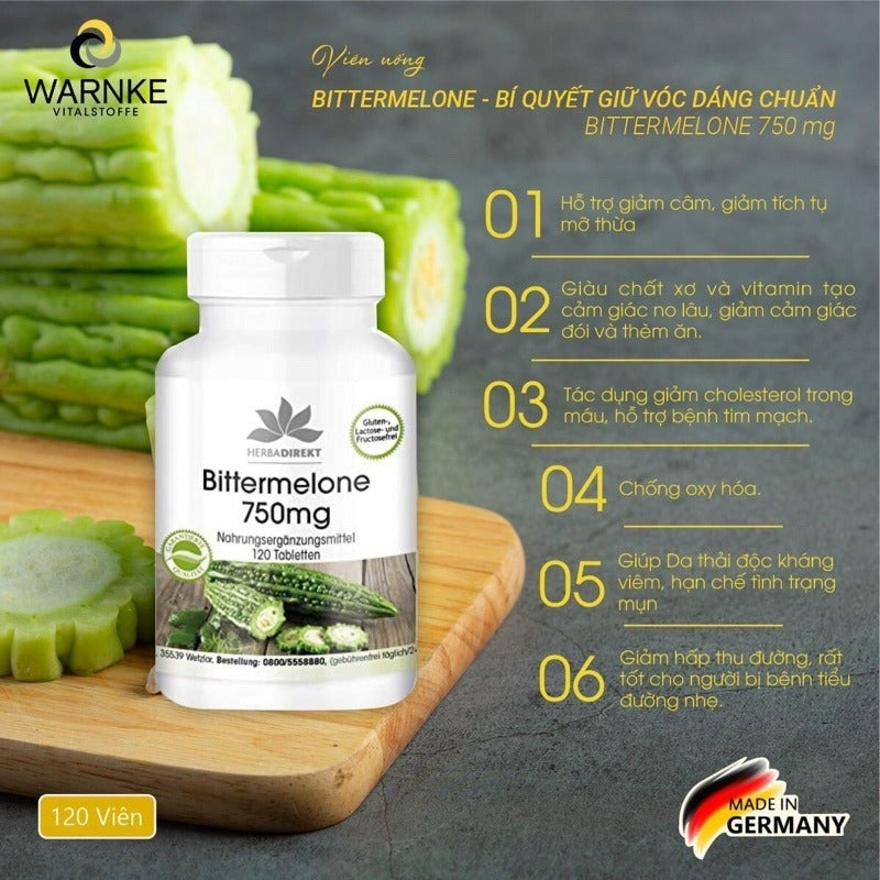 Công dụng Viên uống giảm cân chiết xuất mướp đắng Warnke Bittermelone 750mg