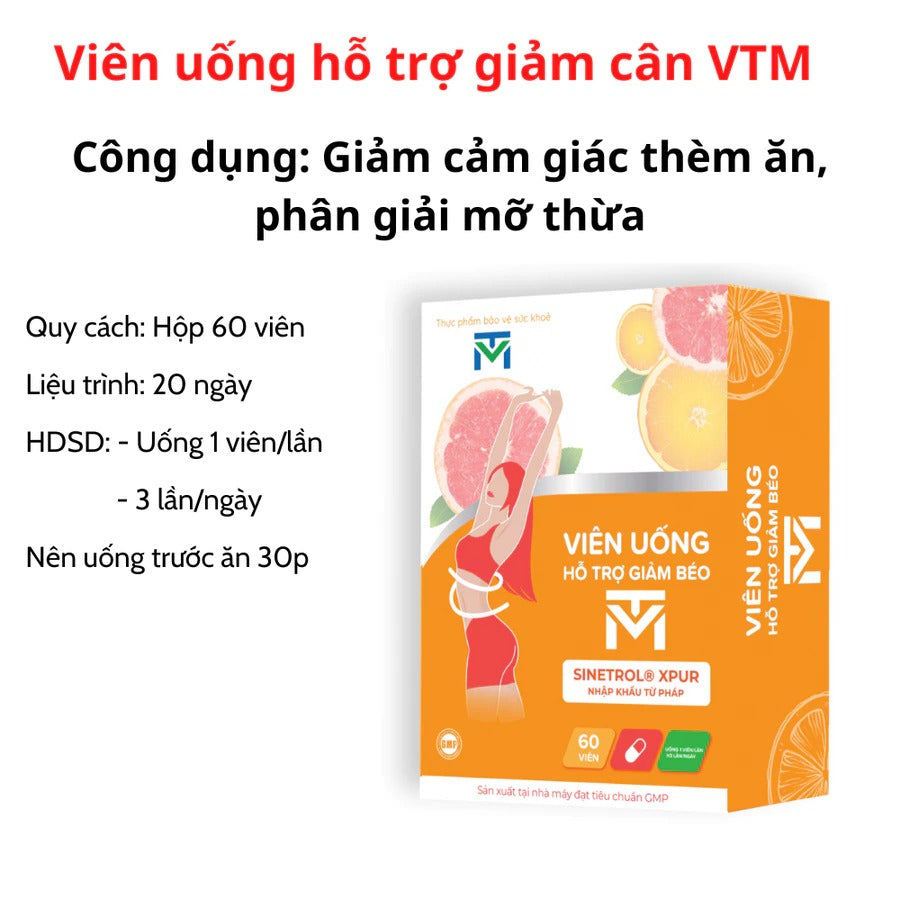 - Tên sản phẩm: Thực phẩm bảo vệ sức khoẻ Viên uống giảm béo VTM
