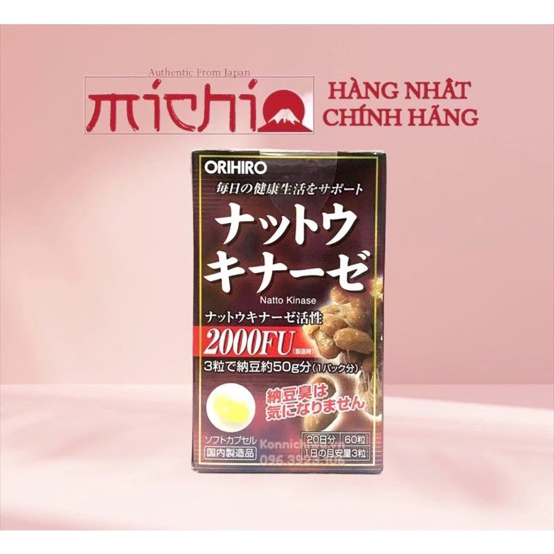 Viên Uống Chống Đột Quỵ, Tai Biến Natto Kinase 2000FU Orihiro Hộp 60 Viên Nhật Bản
