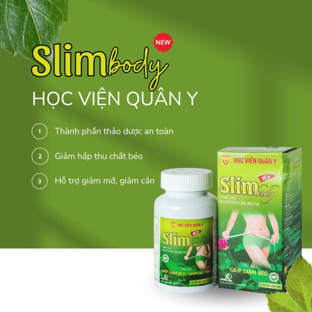 Slim Body New là sản phẩm thuộc đề tài nghiên cứu do tập thể các nhà khoa học Học viện Quân y nghiên cứu và sản xuất. Sản phẩm là sự kết hợp hoàn hảo của các loại dược liệu như lá sen, sơn trà, giảo cổ lam, bụt giấm, chè vằng,... vừa tác động tại chỗ, vừa tác động toàn thân giúp tăng chuyển hóa lipid, hỗ trợ hạ mỡ máu, giảm béo phì, phòng ngừa gan nhiễm mỡ và nguy cơ xơ vữa mạch máu. Các tác dụng này đã được kiểm chứng trên thực nghiệm.