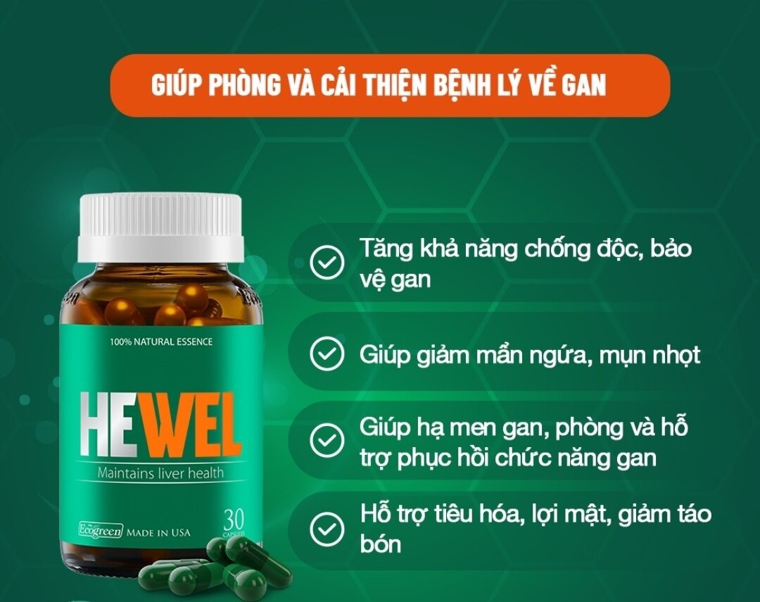 Nhờ khả năng tăng cường khả năng thải độc, bảo vệ gan trước các yếu tố độc hại như bia rượu, thuốc lá cũng như tăng cường hoạt động của tế bào gan mà viên giải độc gan Hewel sẽ mang lại hiệu quả tối ưu trong việc hỗ trợ giải độc gan, giúp giảm mẩn ngứa, mụn nhọt, duy trì làn da đẹp và mịn màng.