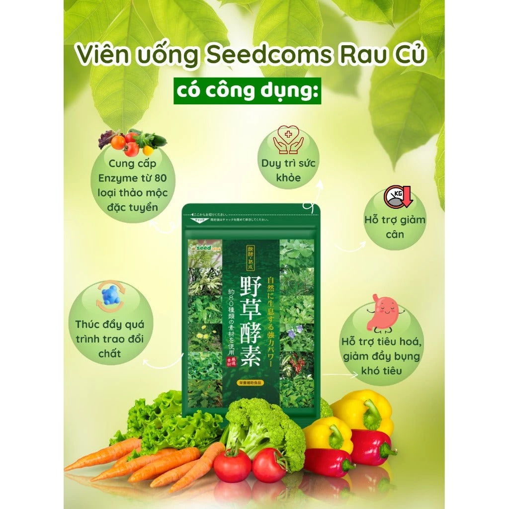 Viên uống Rau củ quả Seedcoms chứa 80 loại thảo mộc đặc tuyến hỗ trợ tiêu hóa, giảm táo bón nóng trong, hỗ trợ sức khỏe